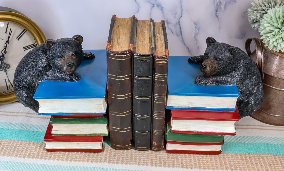 Ebros Rustic Wildlife Bear Cubs Climbing Stack Of Books Bookends 2 Figurine Set