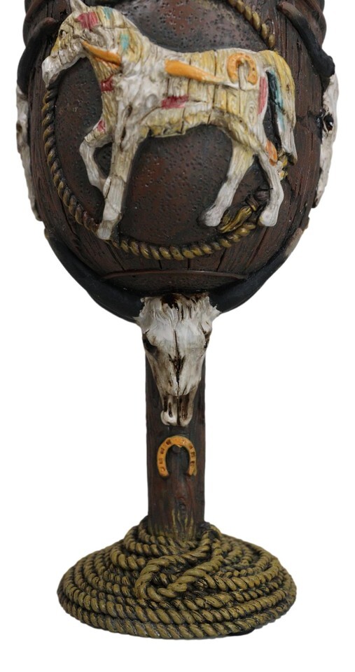 Trail Of Painted Ponies Bunkhouse Bronco Horse With Longhorn Skulls Wine Goblet