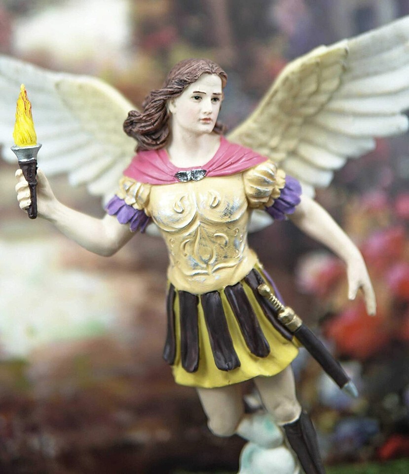 ? Own this marvelous figurine of the archangel Uriel, the patron of Confirmation Sacrament. He is the angel of Wisdom, a burning light of God's truth in this world of darkness and confusion. Sculpted and handpainted on resin medium, this figurine stands on a base with his name written on a plate.Sculpted and handpainted on resin medium, this figurine stands on a wooden base with his name written on a brass plate.
