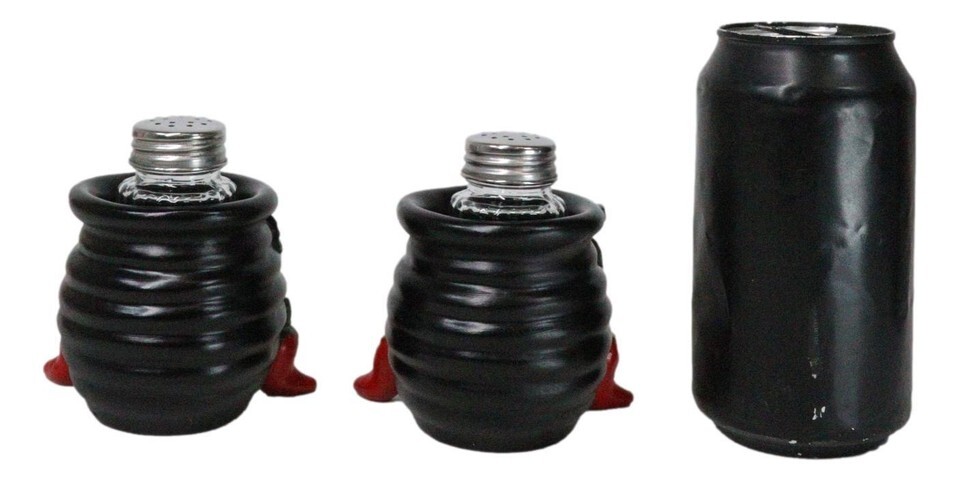 ? This Chili Pot salt and pepper shakers holder set is made of polyresin, hand painted and polished individually.