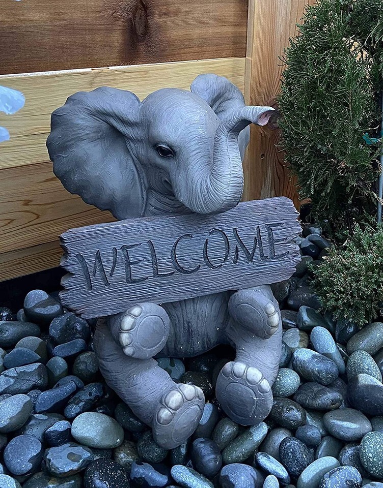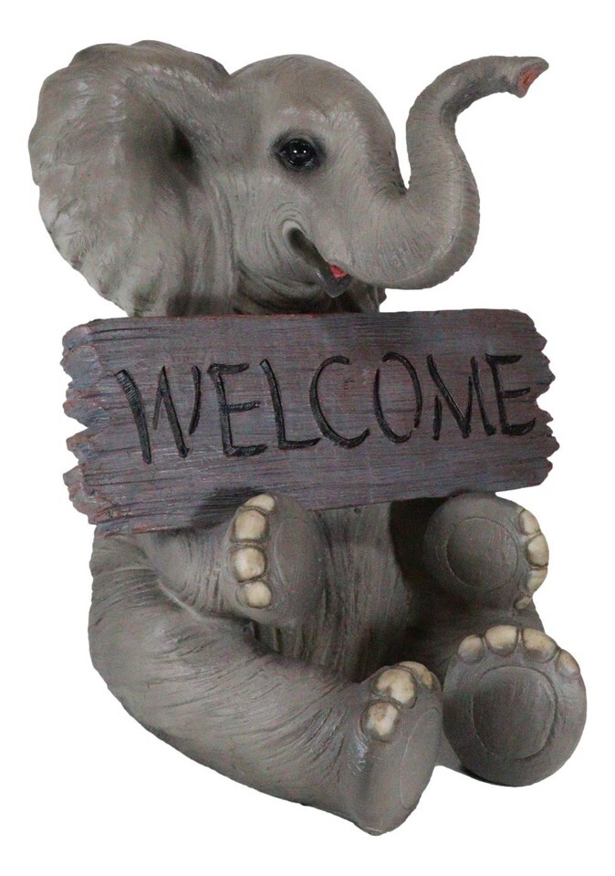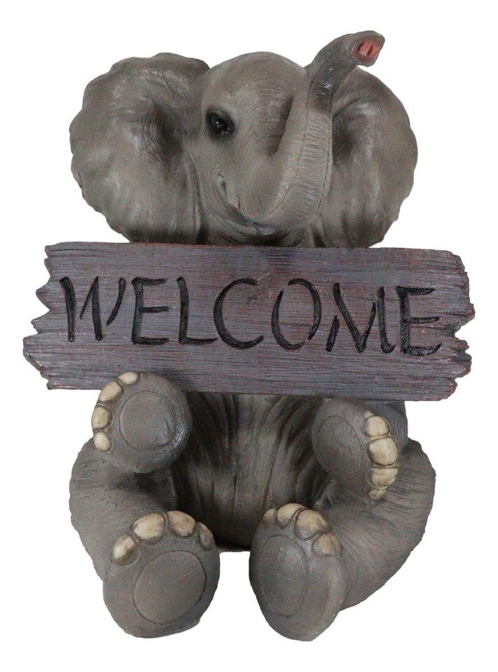 Safari Wildlife Adorable Elephant Pachy Welcome Sign Figurine Patio Decor Statue