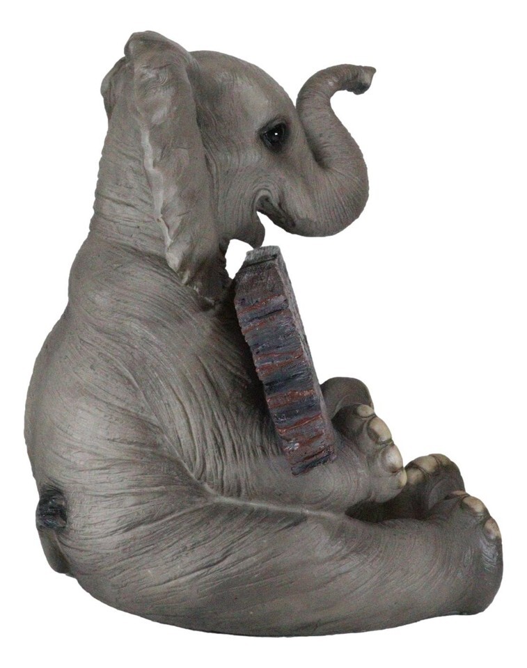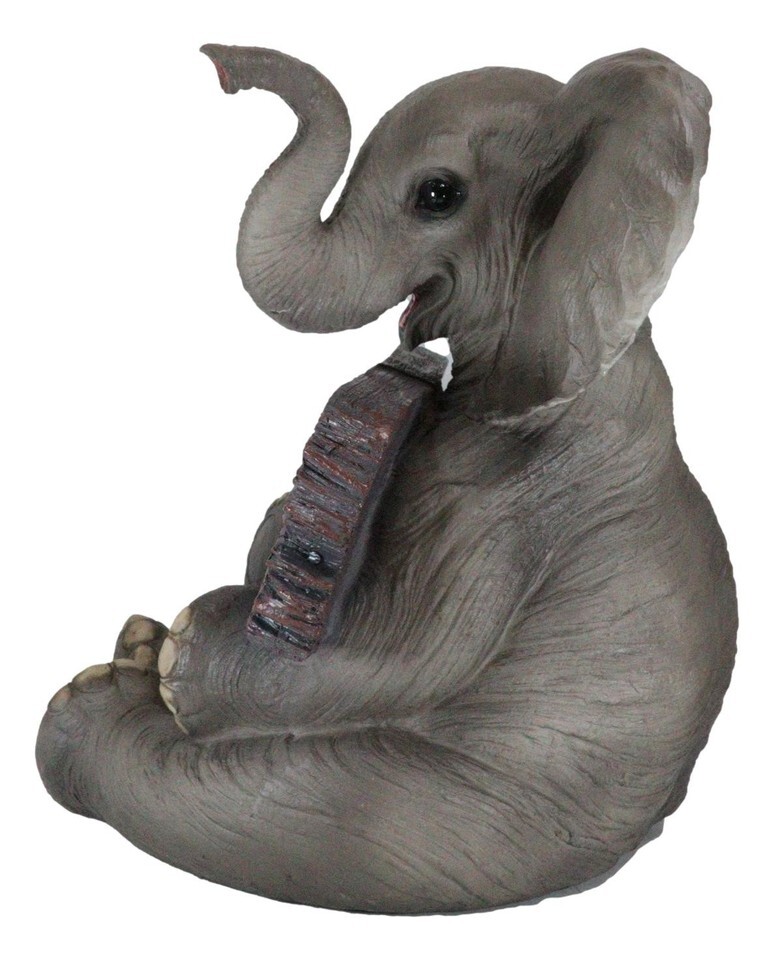 ? The figure exhibits remarkable detail in its hand crafted and hand painted design. This little amiable fellow is a wonderfully cute home accent with a durable resin construction that looks great indoors and won`t wear down on covered front porch. It`s a splendid gift for elephant lovers.