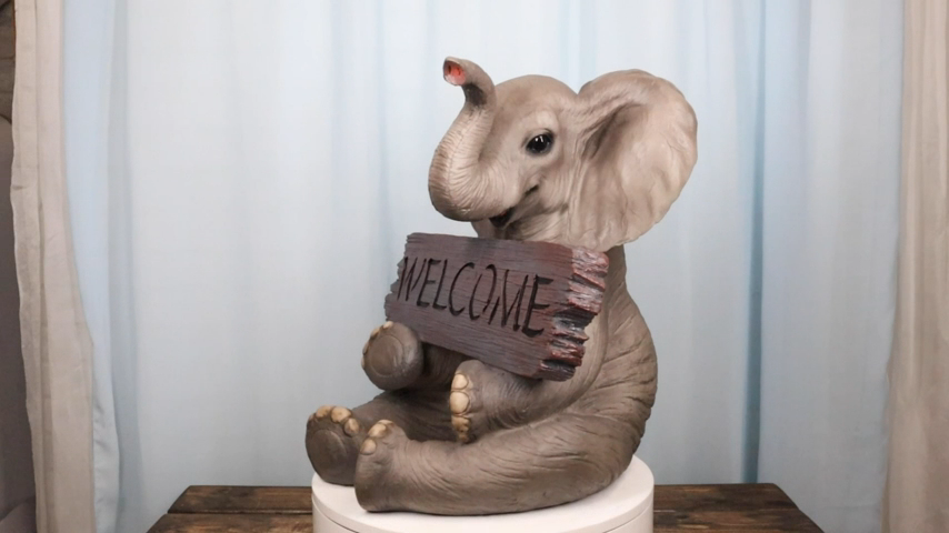 ? This Elephant Welcome Statue is made of resin, hand painted and polished. Color Tone may vary from pictures.