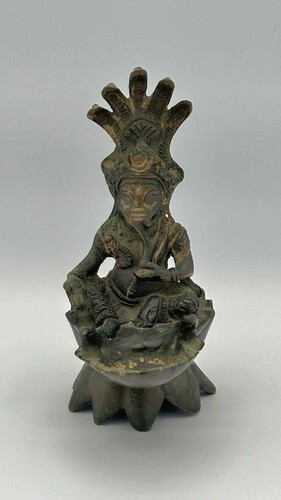 ? This Baby Krishna-Vishnu Sleeping On Peepal Leaf Statue is approximately 1.75" tall and 6.25" long and 4" deep.