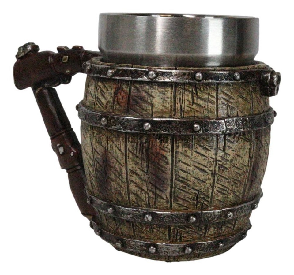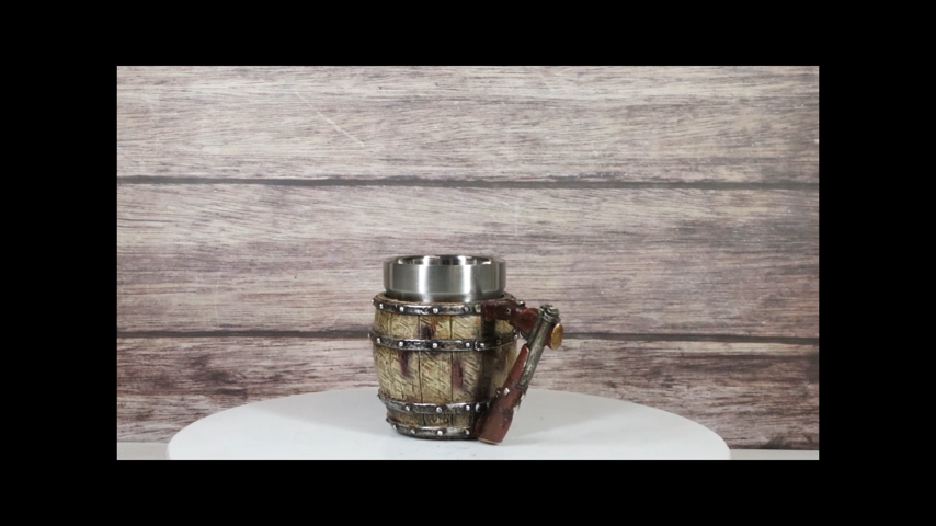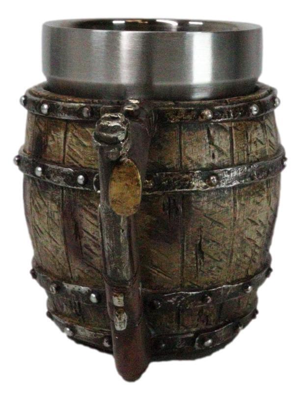 ? This Saloon Barrel Mug is made of high quality resin with stainless steel liner, individually hand painted and polished. Color Tone May vary slightly from pictures.