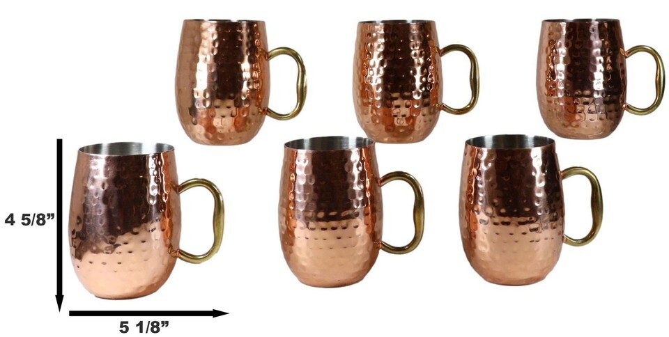 Pack Of 6 Moscow Mule Copper Stainless Steel Hammered Barrel Cup Mug Gold Handle