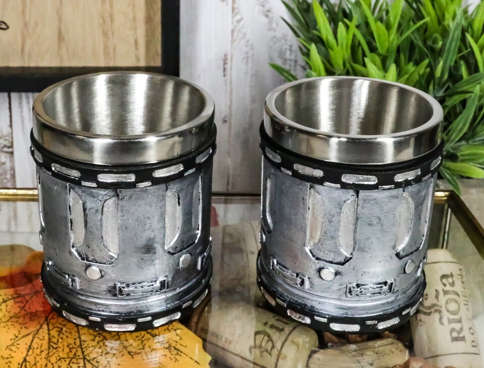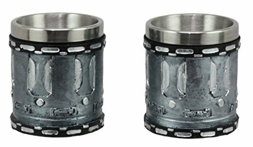 ? This Revolver Pistol Barrel Cylinder Shot Glass is made of polyresin, hand painted and polished individually. Each shot Glass is equipped with a stainless steel liner for safe drinking and washing.