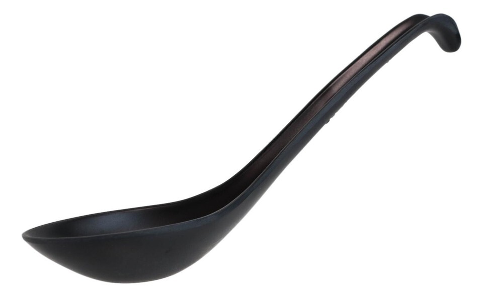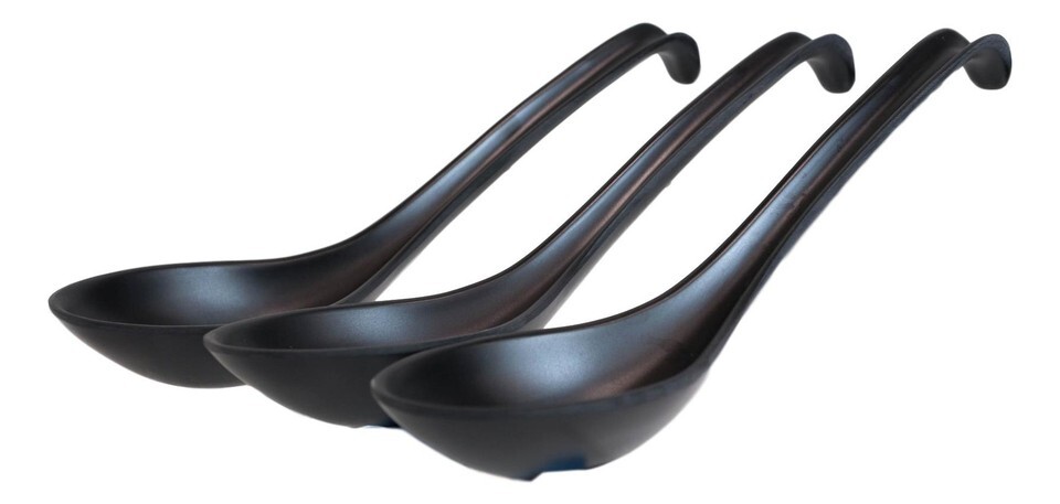 Pack Of 6 Matte Black Melamine Asian Noodle Soup Spoons With Ladle Hook Ends