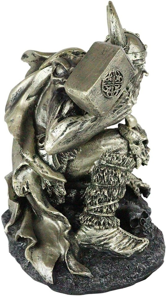 ? The Thunder God Thor With Hammer figurine is made of designer composite resin, electroplated in gold powder and polished.