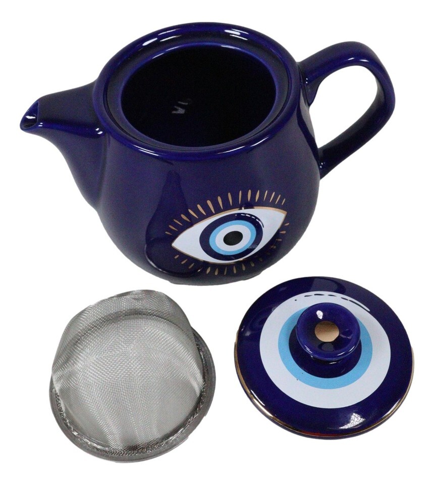 ? The evil eye has been a symbol of protection from negativity and harm for centuries, and this teapot embodies that belief. The concept of the evil eye suggests that it deflects negative energy directed towards the owner and balances their life while bringing good luck. This teapot is perfect for a single serving and is a must-have for anyone looking to add a touch of protection and positivity to their tea time.