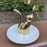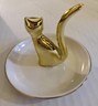 Golden Feline Cat Kitten Ceramic Ring Accessory Jewelry Holder Vanity Display