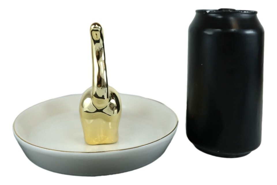 ? Put a smile on your loved ones with this golden crouching cat jewelry dish storage holder. The cat is an abstract artwork but the glossy ceramic shine finish gives the figurine an expensive luxurious look. You can hang some rings on the cat's tail and set small jewelry on the dish itself. It can also be used to store coins and other knick knacks you might have.