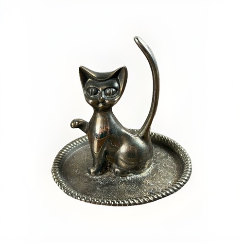 ? This Pretty Golden Kitten Ring Holder And Jewelry Dish Organizer is 4.5" tall and 5.25" in diameter.