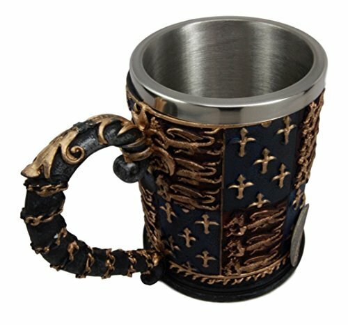 This Coat of Arms Medieval mug is perfect for your medieval/renaissance themed parties! Imagine drinking out of this mug with your beer buddies, close relatives or what have you! Made of high quality polyresin, hand painted and polished, this mug is topped with a stainless steel liner for safe drinking.