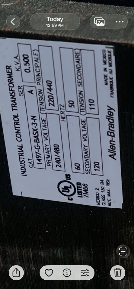 Allen-Bradley 1497-G-BASX-3-N Control Circuit Transformer