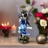 ? This gorgeous piece features an elf fairy with blue wings and an outfit done in shades of purple. The fae sits upon a blossoming pink flower, while enjoying the sight of a frosted glass which contains LED lights! The base of the piece features whimsical little mushrooms and more flowers. Anyone with a love for pixies is sure to appreciate this unique way of bringing some light into the home!