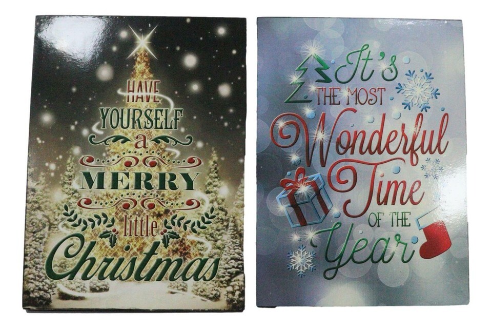 ? You will receive one each of the two artwork posted in our photos; 1. It's the most wonderful time of the year sign with images of a gift box, christmas tree, frostflake and sock. 2. Have yourself a merry little Christmas sign with a glorious tree and starry skies. They will transform the ambiance of your wall immediately with festive and joyful flavor.
