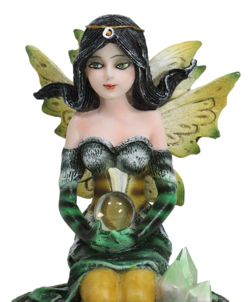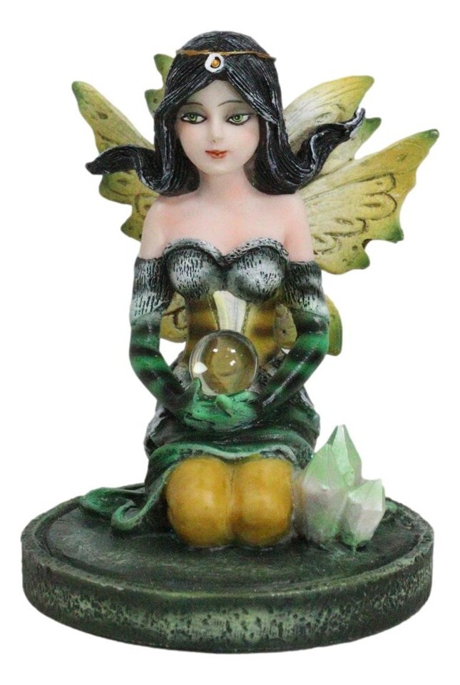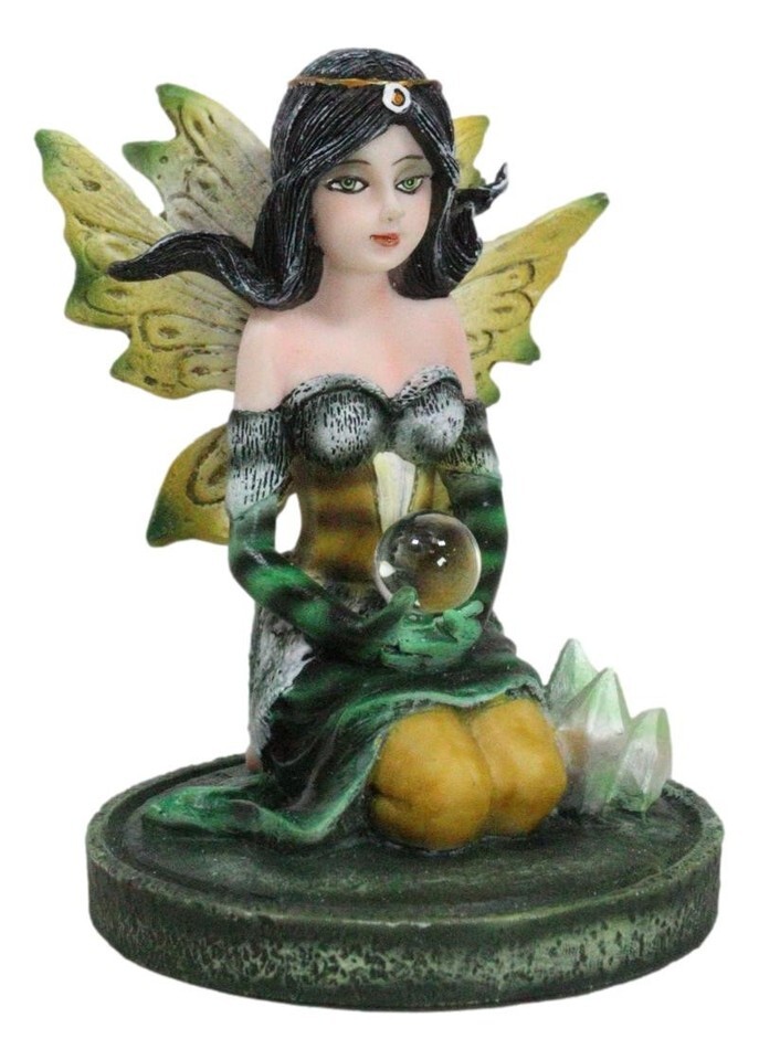 ? Step into a world of enchantment with our Kneeling Bumblebee Fairy Figurine, a delightful masterpiece that captures the whimsy of the fairy realm. This small figurine features a charming fairy in a kneeling pose, adorned with the vibrant colors of a bumblebee, delicately holding a crystal ball. Nestled on a crystalline garden, the intricate details bring this magical creature to life.