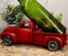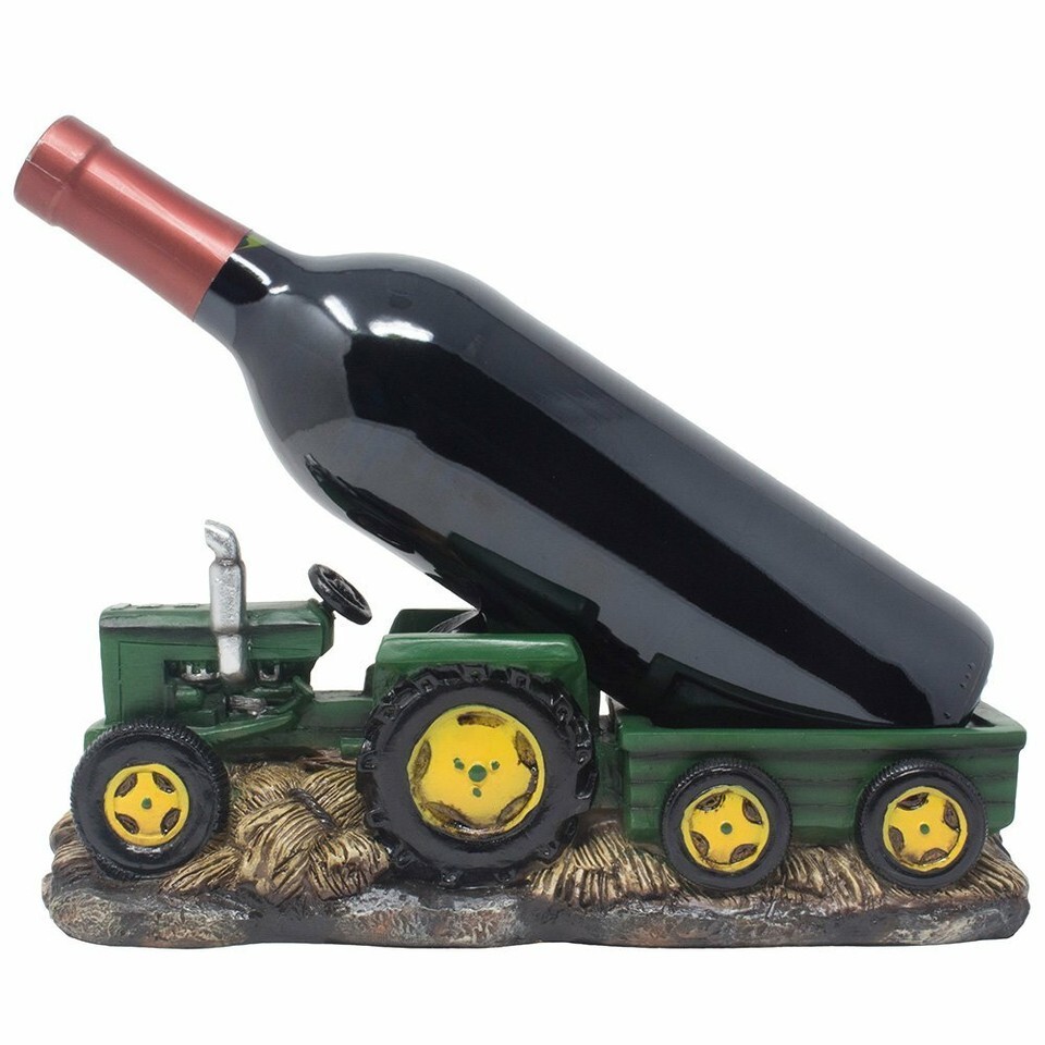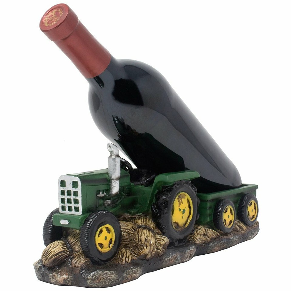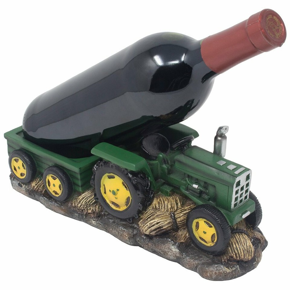 Vintage Old Fashioned Green Harvest Farm Tractor With Trailer Wine Holder 11"L