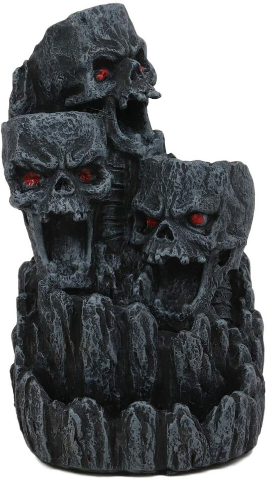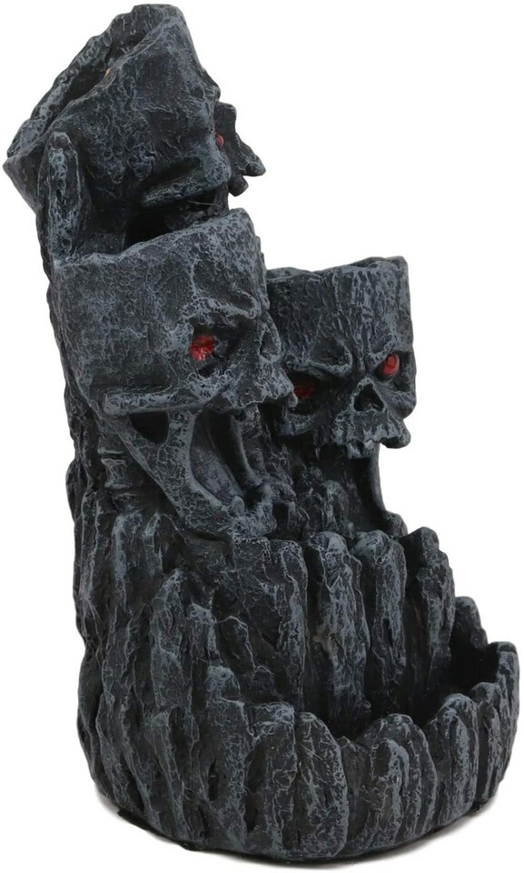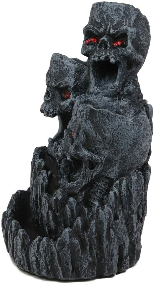 ? This Three Screaming Skulls Smoking Backflow Incense Burner Sculpture is made of polyresin, hand painted and polished. Incense Cones not included.