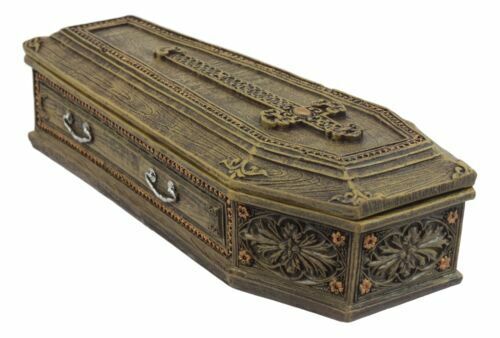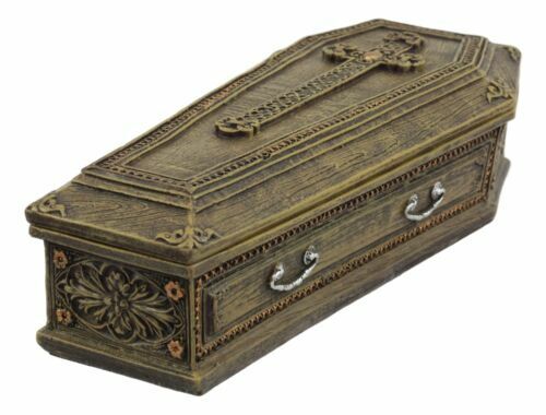 Ebros Rustic Vampire Coffin Box Rest In Peace Dracula Casket Trinket Box 8"L