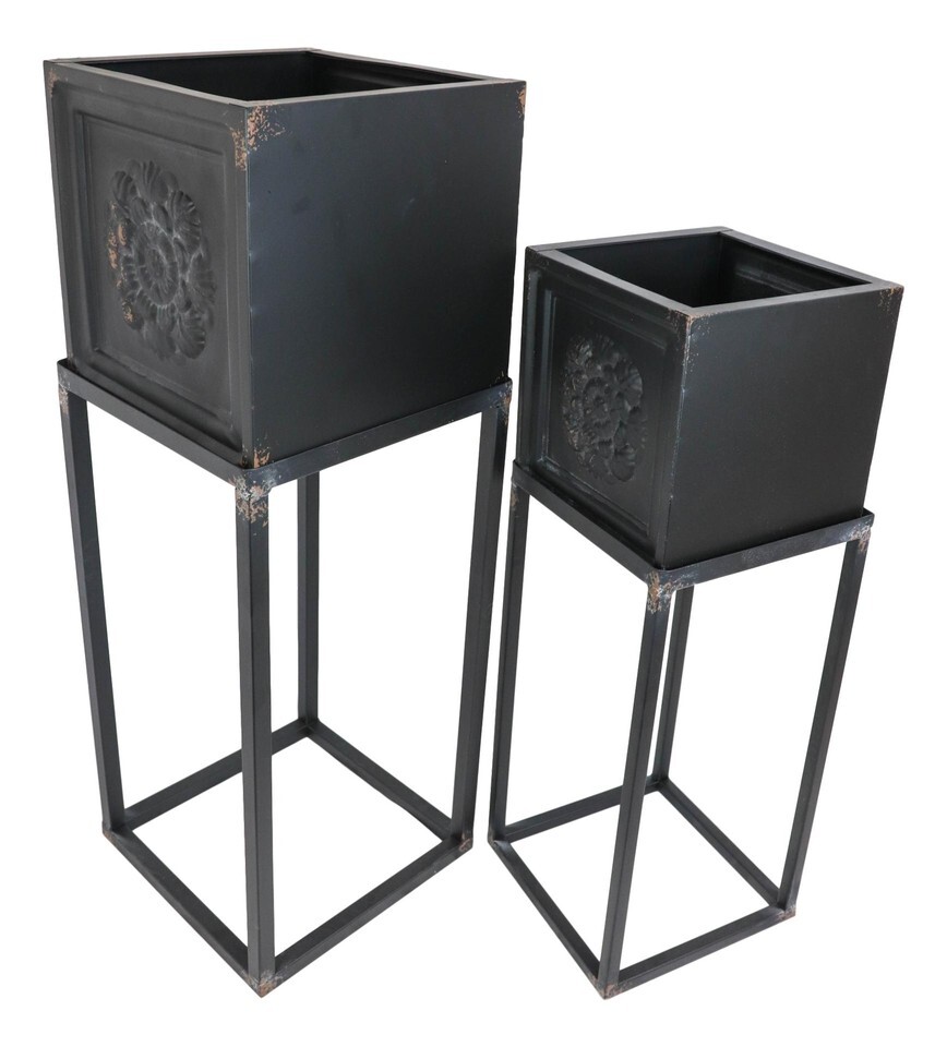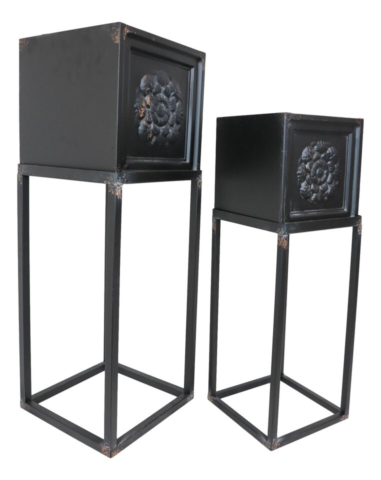 ? These 2-Piece pot planter set is forged in 100% metal and finished with a rustic black powder coat for a lasting display and use. The removable pot and lightweight frame allow these accent pieces to move easily into any room without any fuss