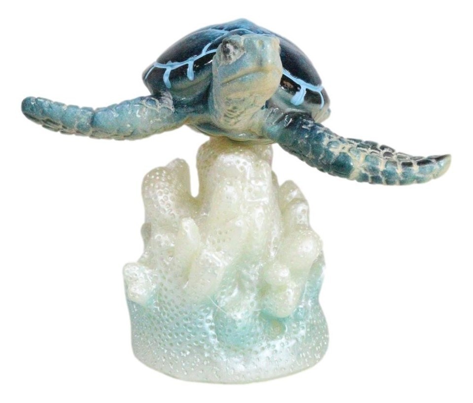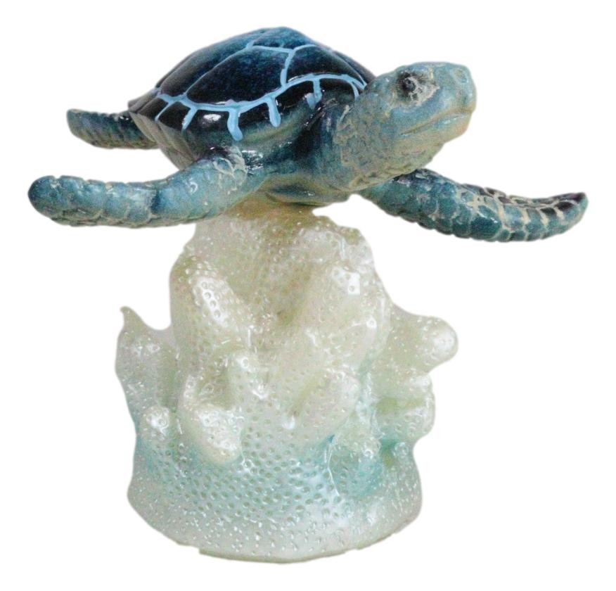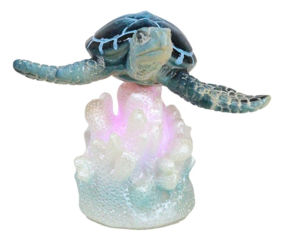 Ocean Marine Blue Giant Sea Turtle Swimming Over LED Light Coral Reef Figurine
