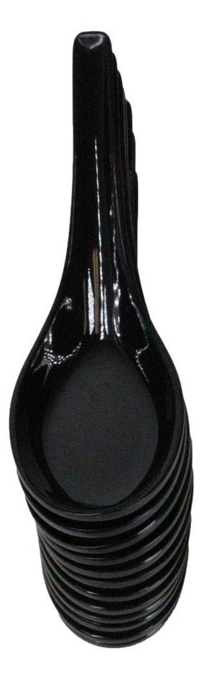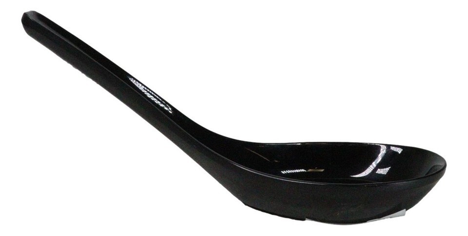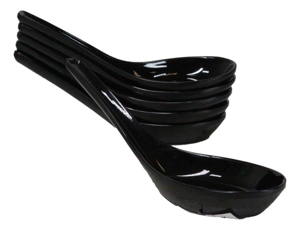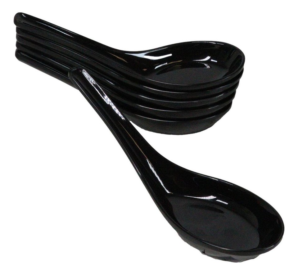 Contemporary High Gloss Finish Black Melamine Asian Soup Spoons Pack Of 6 Set