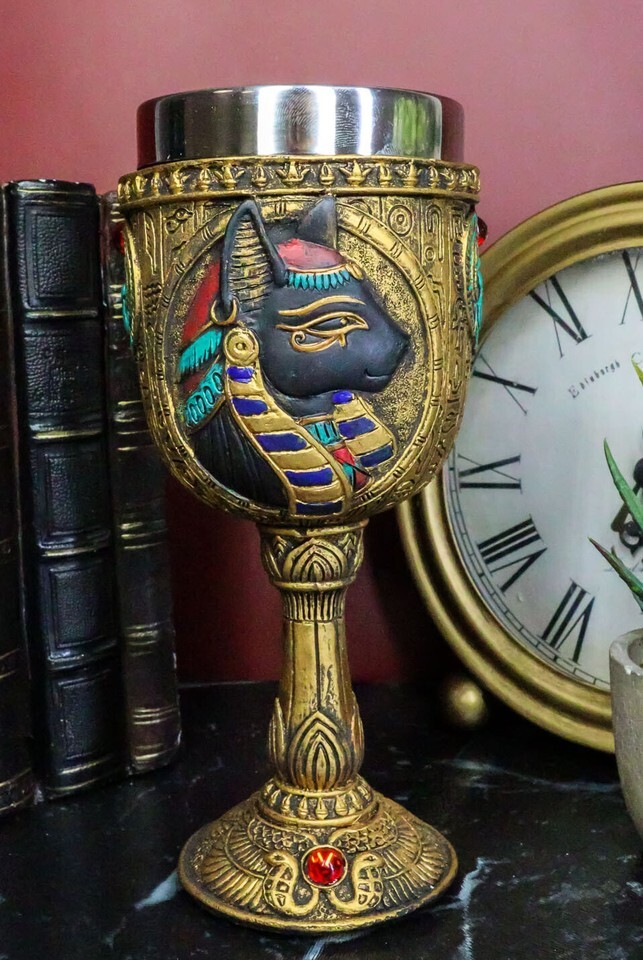 Egyptian Goddess Of Home And Women Bastet Cat With Scarab Wine Goblet Chalice