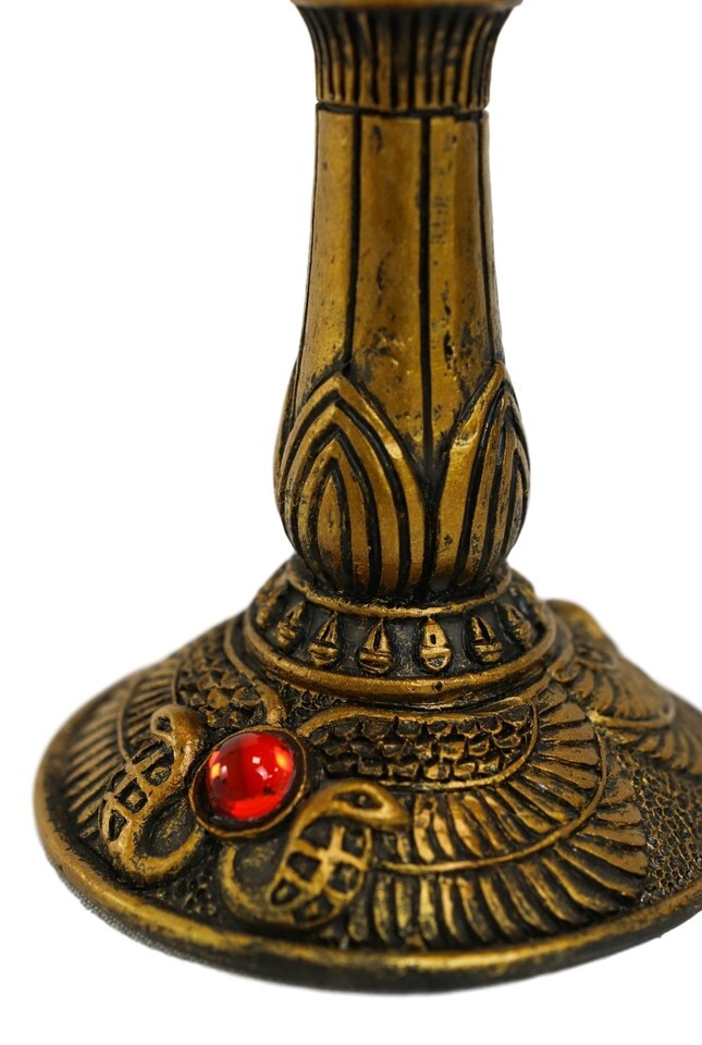 This Golden Hieroglyphic Egyptian Wine Goblet is made of fine polyresin and stainless steel, hand painted and polished indivdually. Handwash the stainless steel drinking part only.