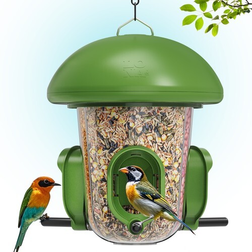 ? This bird feeder will look right at home hanging from a tree branch, patio corner or what have you. Modeled after a familiar fruit, the scrumptious green pear, we include a finch perching on its gobbled up flesh! Delightful to look at, the bird feeder has plenty of room for your garden's bird friends to hover and feed!