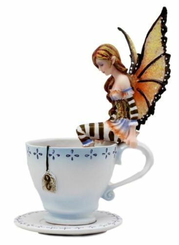 ? This Amy Brown Mocha Coffee Teacup Fairy is made of designer composite resin, hand painted and polished individually.