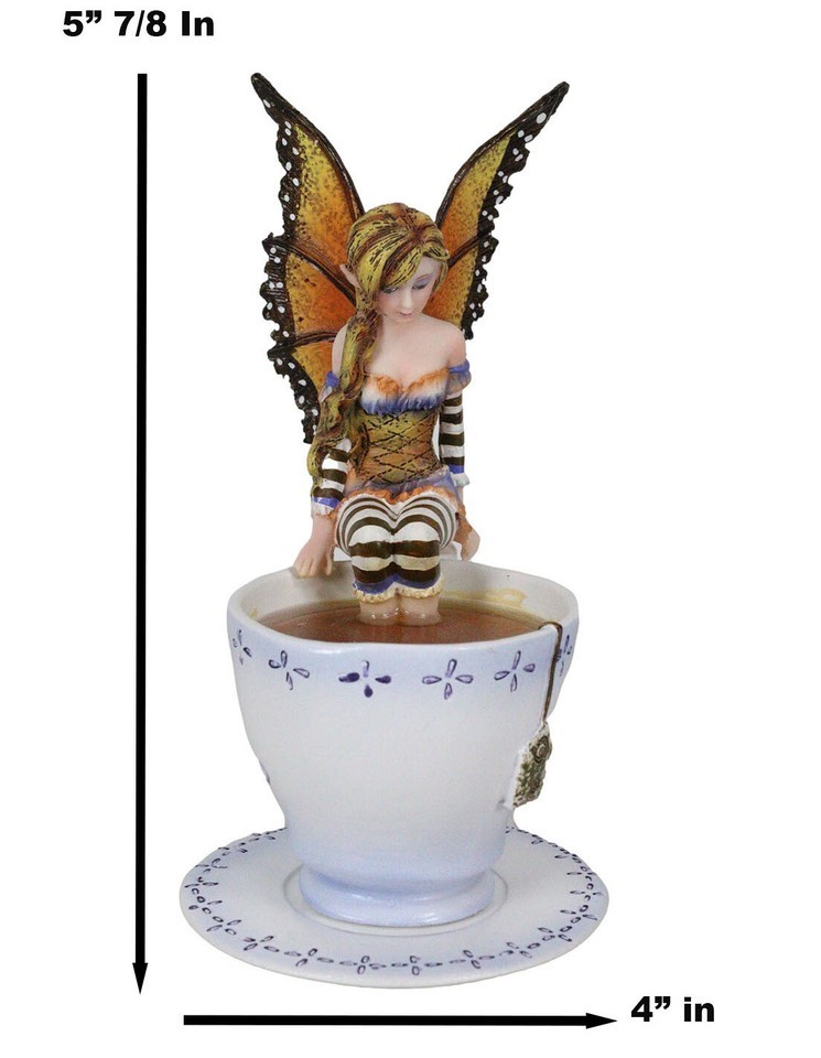 Ebros Amy Brown Fantasy Teacup Mocha Coffee Fairy Figurine Warm Toes 6.5"H