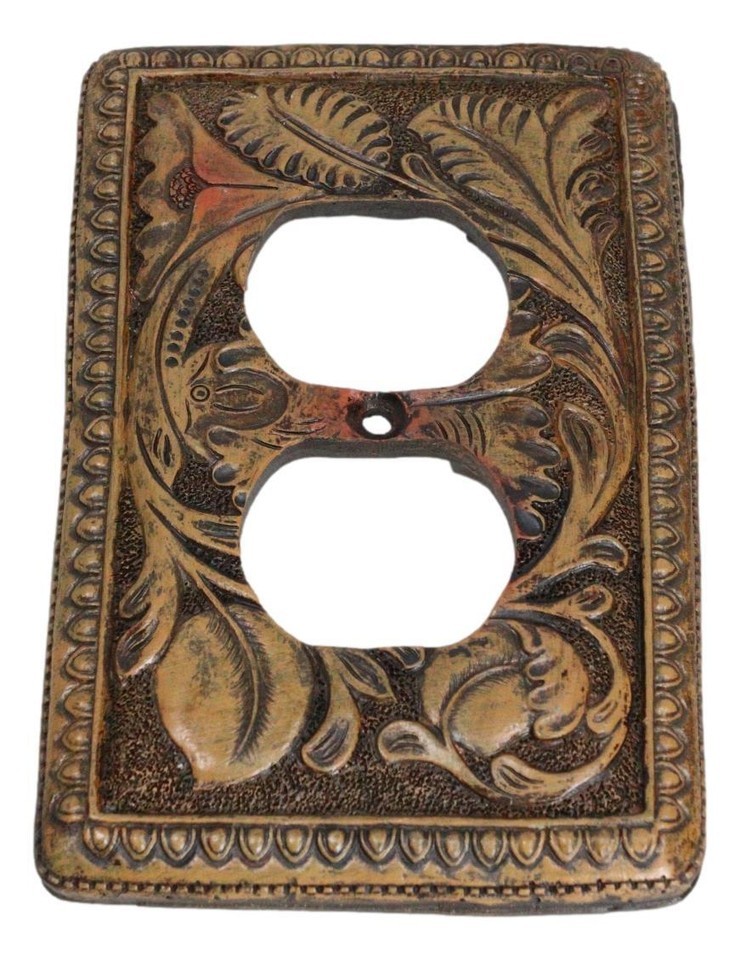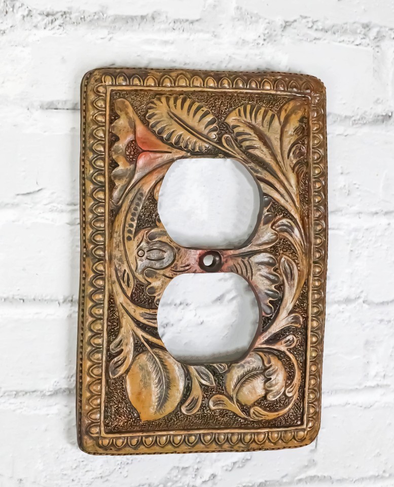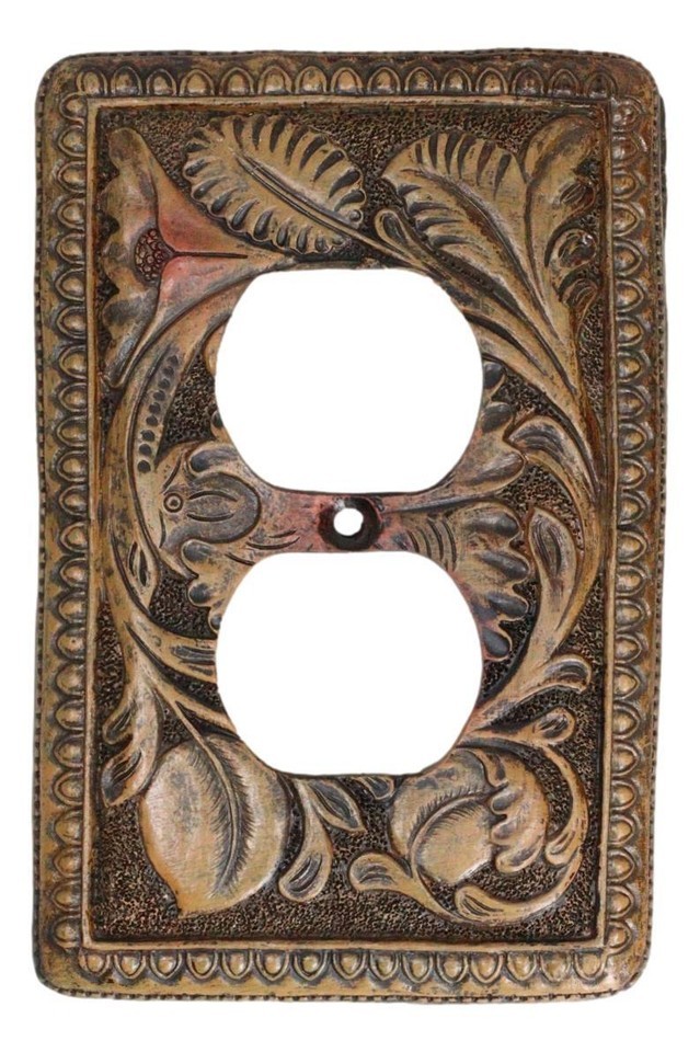 Set of 2 Rustic Western Tooled Floral Lace Double Receptacle Outlet Wall Plates