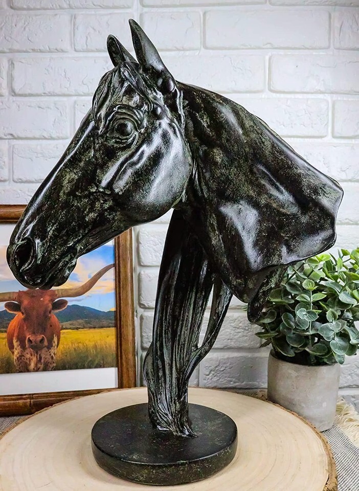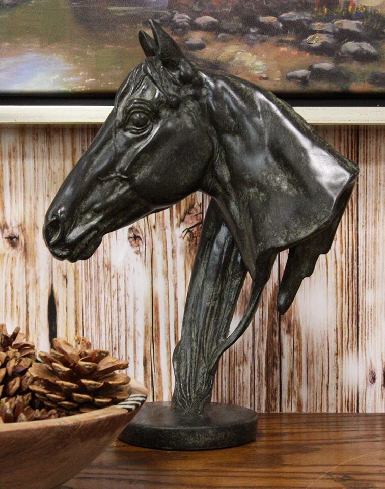 ? The Stallion Bust is sculpted in deep appreciation for the beauty and excellence of the Stallion Horse. The sculpture runs from the handsome head of the horse to its mane running down its neck to the base of the sculpture. The Granite Look gives the sculpture an aged look like that of a Terracotta Horse, giving it a high perception of value. The Horse Head will make an impressive decor for any shelf, desktop, mantle-piece or what have you!