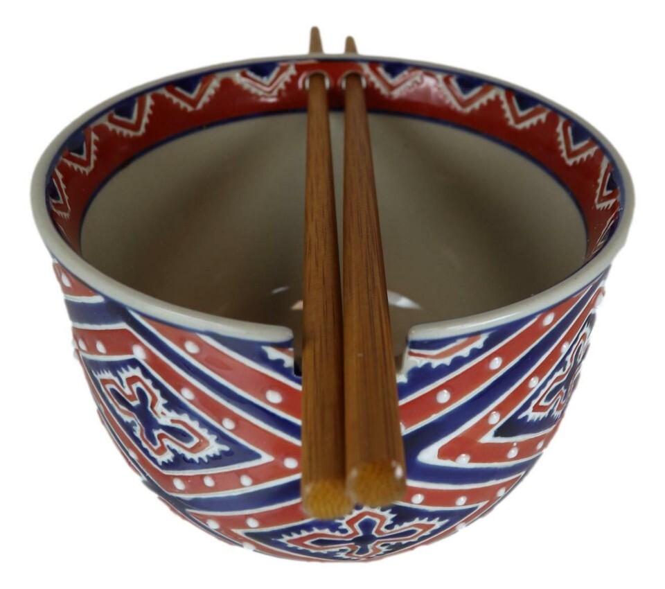 * This beautiful ceramic soup bowl comes with a pair of wooden chopsticks. Feast on your favorite ramen noodles in a stylish Bowl with a built in chopsticks rest.