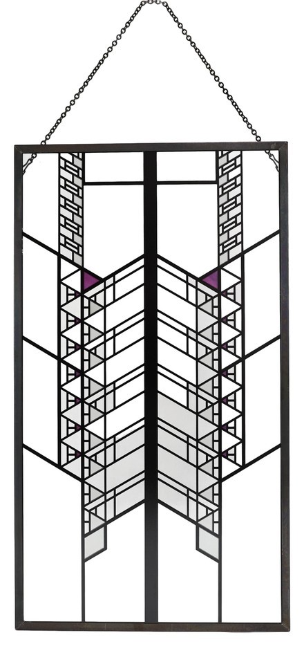 ? The Frank Lloyd Wright Hollyhock House Stained Glass is adapted from one of Wright?s first Los Angeles project, the Hollyhock House, which was completed in 1923. The house was inspired by the favorite flower of Aline Barnsdall who commissioned the home. Geometric patterns are used to represent the design detail Wright used in four of the home?s adjacent living room sidelights.