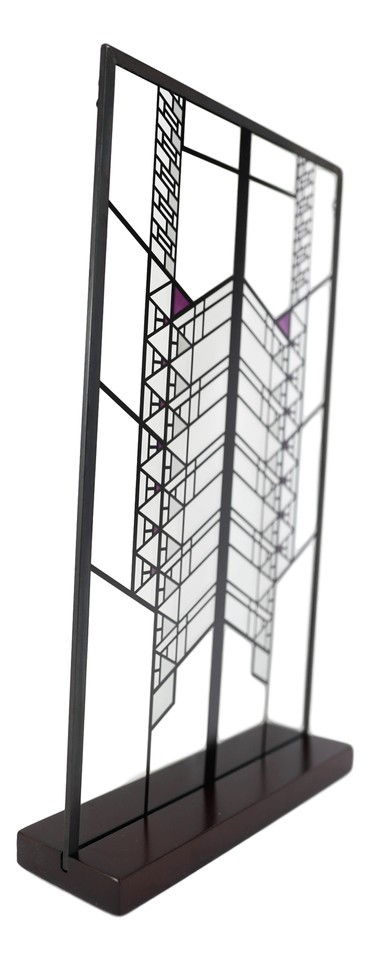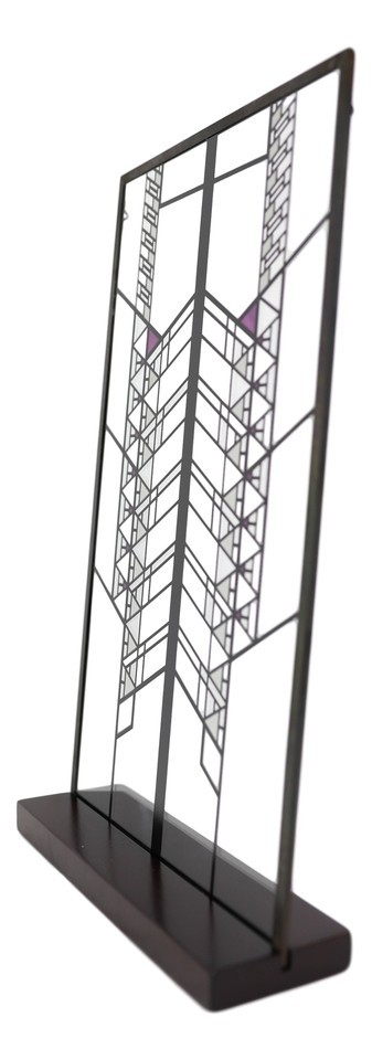 ? The measurements of this beautiful Frank Lloyd Wright Glass art are: GLASS: 14" by 7.75" Wide x 0.25" Thick.