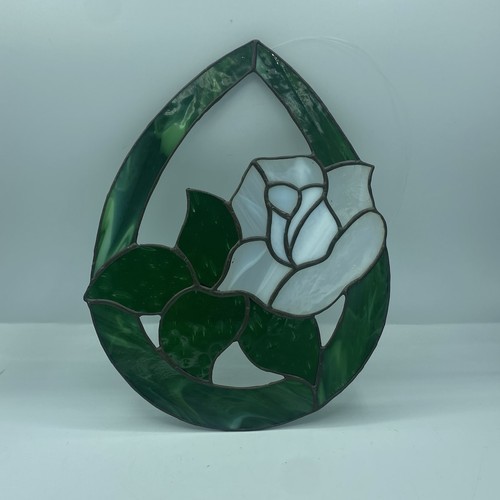 ? On this glass panel, enamel colors are individually applied to a single sheet of glass which is then kiln fired to permanently fuse the enamels to the glass. The glass is then metal framed and includes both a hanging chain and a wooden plaque base.