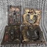 ? These Rustic Western Mustang Horse And Pine Trees Silhouette Wall Electrical Cover Plates are made of polyresin, hand painted and polished individually. Because it is a resin product, it can crack if you over-tighten with the screw driver.