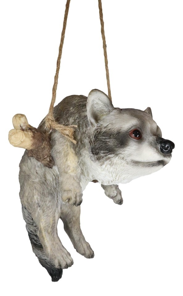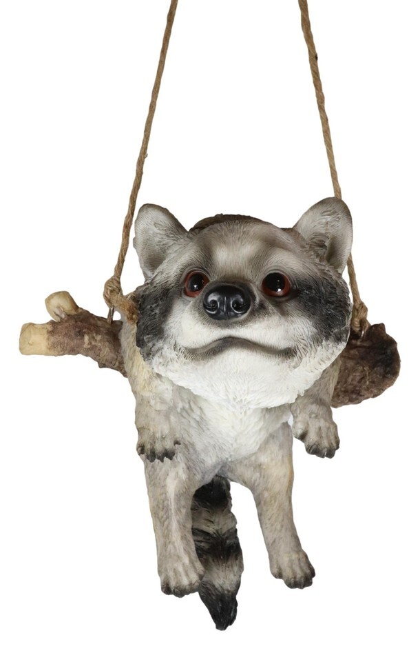 ? Macrame is super hot right now and so we thought it will be delightful to combine the decor with our realistic lifelike animal sculptures! This particular model features a baby raccoon playfully hanging on a swing branch. The sculpture comes with jute strings that hang 8 inches above the head of the figurine. It will be an awesome macrame wall or ceiling or branch hanger for your decorative taste!