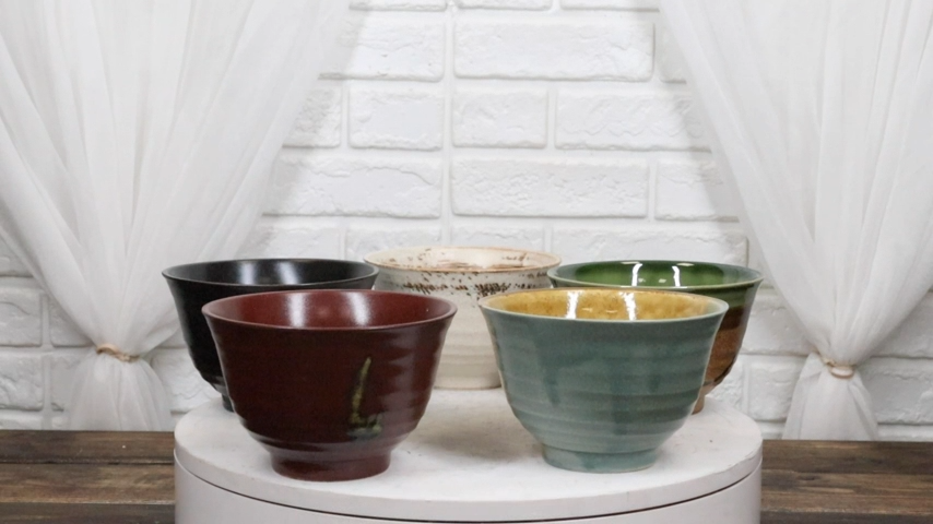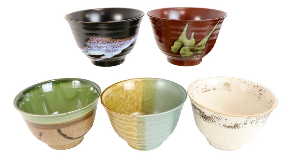 ? These set of 5 bowls are artistically designed by Japan's finest pottery masters. The bowls are finished in a natural glaze which seals the pores but allows for textured quality for a "handicraft" look. They come in many neutral earth colors as seen in the pictures with very tasteful and aesthetic abstract brushwork design.