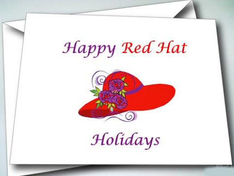6 Happy Holiday (Christmas) cards w/ envelopes FOR RED HAT LADIES OF SOCIETY