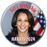 This listing is for QUANTITY 12 - 3" SAFETY PIN BACK BUTTON. THIS BUTTON IS IN SUPPORT OF #1 DESIGN KAMALA HARRIS "LET'S WIN THIS" IN THE RUNNING FOR PRESIDENT OF THE UNITED STATES OF AMERICA IN 2024. YOUR BUTTON WILL SHIP WITHIN 24 HOURS FREE FIRST- CLASS MAIL, US ONLY. Upgrades in shipping speed are available at checkout if needed. We also carry a premium econo BLANK name badge line for businesses with high turn- over employees (these badges can be personalized with crystal clear labels.)