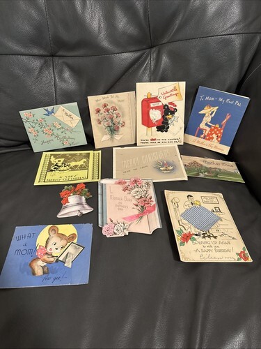 You are looking at a set of 6 note cards and envelopes.Great for keeping in touch with your red hat friends. These cards are blank inside. The measure 5 1/2" accross by 4 1/2" high. The front is printed with Large bunch of pretty flowers and Red Hat and it reads "HAPPY BIRTHDAY" . I will gladly combine shipping. Place your choices in your cart, then request a total (top right) I will then send you an invoice with a combined shipping total.