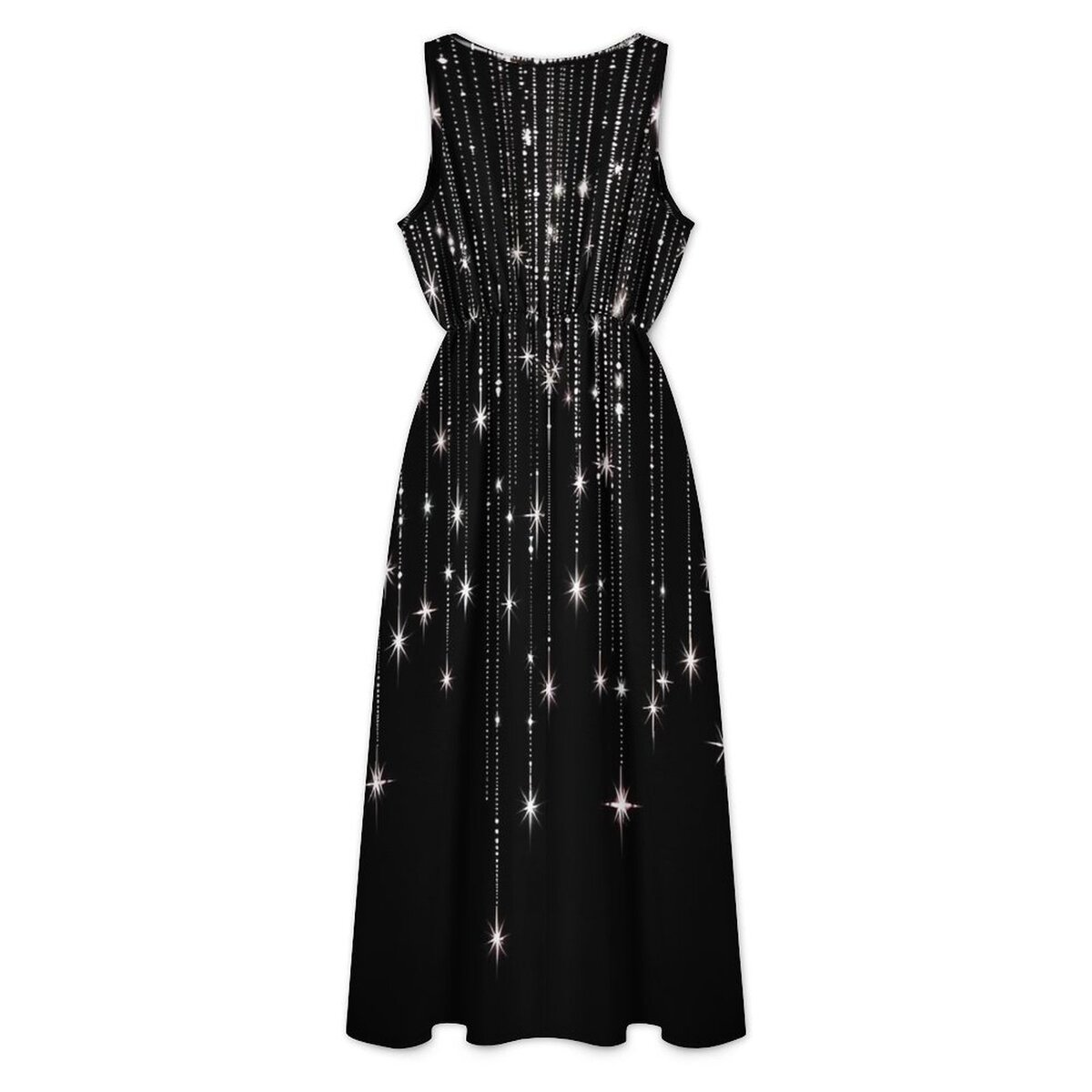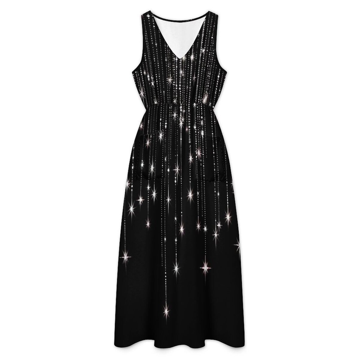 Black Falling Stars Sleeveless V-neck Midi Dress (Size S - 5XL)