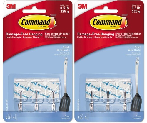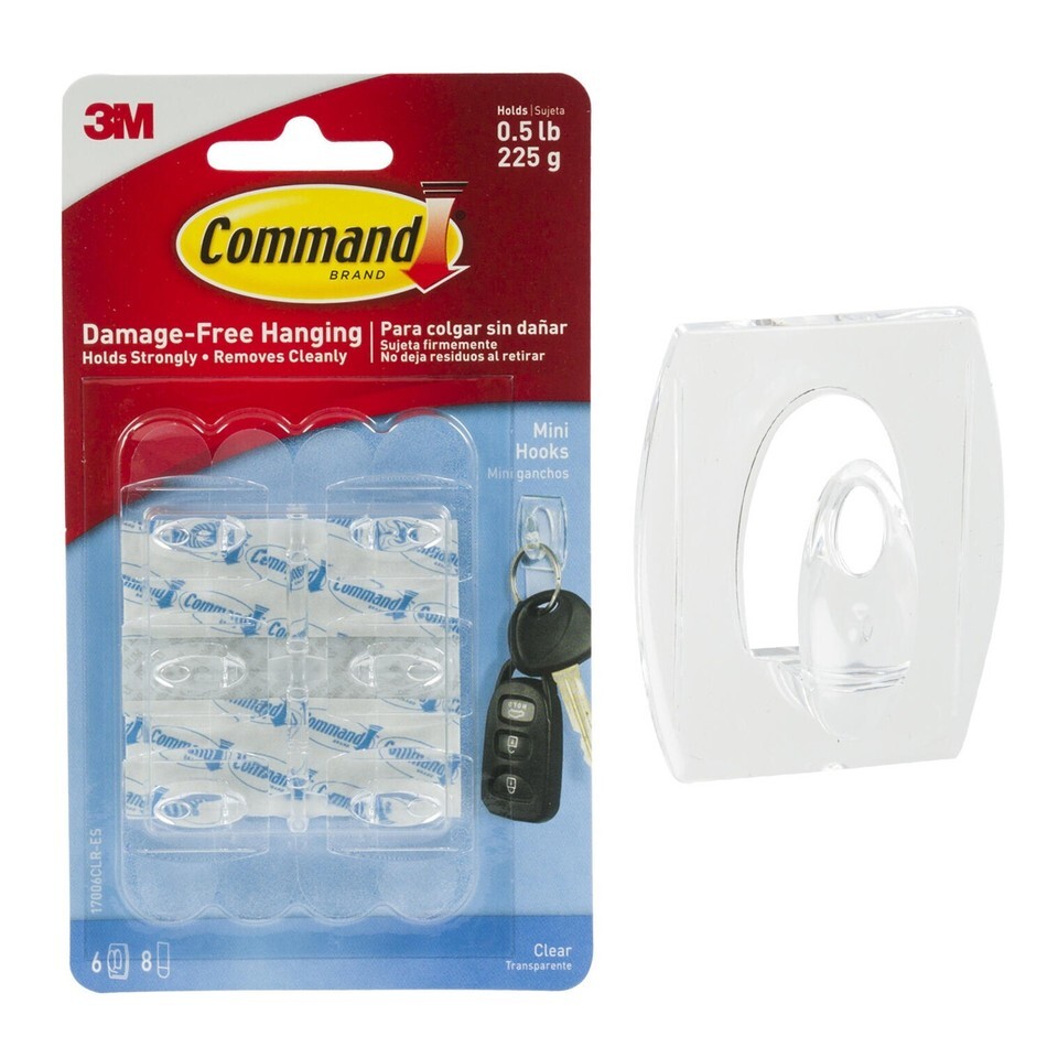 Command Strips Mini Clear Utility Hooks 6 Pack.