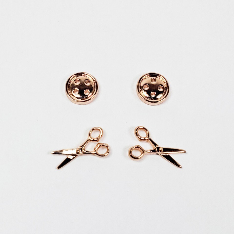 Button and Scissors Earring Set of 2 Rose Gold.