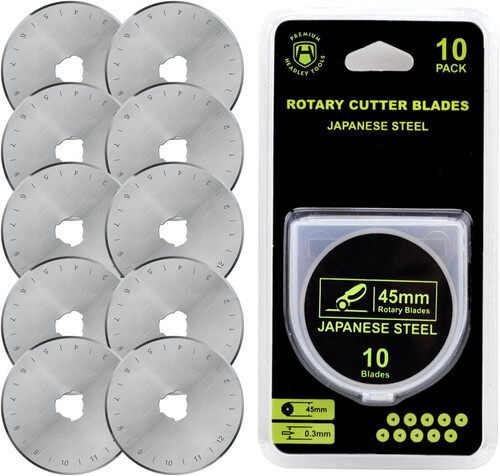 Circular rotary replacement blade for our popular 45mm rotary cutters used for quilting, sewing, and general crafts.