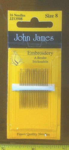 John James Needle Crewel/Embroidery have a longer eye which makes them ideal for threading stranded cotton.